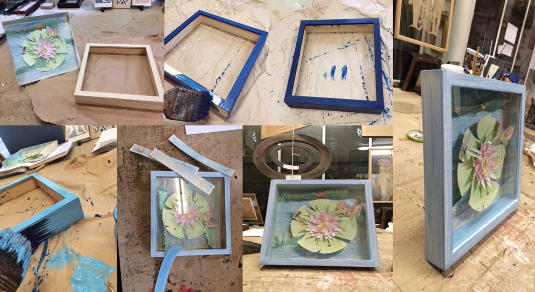 Dorure à l’ancienne ou patines modernes, cadres en placage, sculptés main, bois en essences rares nous pouvons également peindre à la couleur de votre choix diverses moulures.
